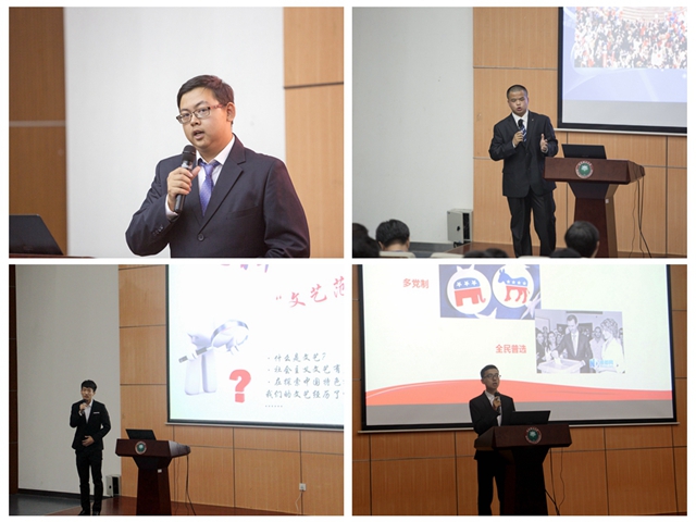 基础教育学院机械与运载学部求是队以当下的社会热点“社会主义文艺”为话题切入,对当下文艺界出现的一些非理性现象进行了分析与思考。软件学院新青年队从“西方民主不适合中国”这一题目入手,以执政党和反对党对三峡大坝建设和南水北调工程的态度矛盾为例,论证了西方的民主并不适合中国国情。基础教育学院理学与材料学部理智队从社会热点出发,通过对社会热点事件的分析,呼吁同学们关注社会热点,增强主人翁意识和责任感。基础教育学院信息一部求真队,从中国传统思路与西方思维的差别切入,论证了中国没有西方民主制度生长的土壤,社会主义制度才是最适合中国国情的制度。