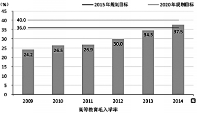 这项系统评估显示,2014年我国高等教育在校生规模达3559万人,居世界第一,高校数量为2824所,居世界第二,高校毛入学率达到37.5%,提前完成了《国家中长期教育改革和发展规划纲要(2010—2020年)》设定的36%的阶段目标。