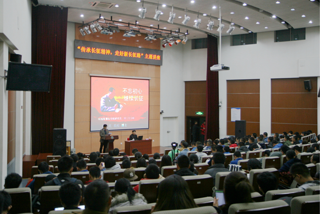 本次讲座作为学校学生党员“两学一做”学习教育、“纪念红军长征胜利80周年”系列活动的重要组成部分,由党委学生工作部主办,数学与统计学院承办。目的是帮助同学树立正确的人生观、价值观,引导广大同学重温长征精神,树立实现中国梦的崇高理想,做新时期的红色基因传承人。