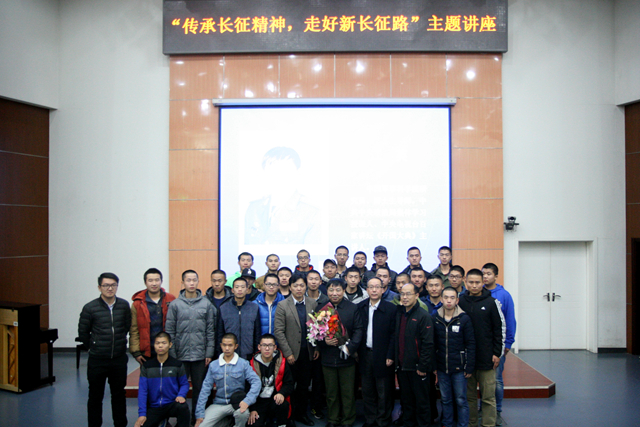 江英在讲座中特别提及了习近平总书记近期发表的重要讲话,他告诉同学们,“长征的重要意义不仅限于当时,长征对今日的我们仍然有着极大的启示作用。”他还说,“长征是一次‘理想信念、检验真理、唤醒民众、开创新局’的伟大远征。我们应当传承这种‘长征精神’,拨正船头,扬起风帆,继续前进”。他通过讲述那段历史回忆,生动地阐述了“长征精神”,引导同学们在实现“两个一百年”奋斗目标的征程中,不忘初心,走好新的长征路。