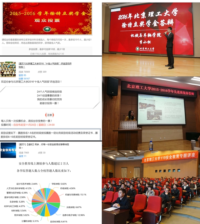 网络思政教育工作是北理工思想政治教育工作的重要阵地,学生工作处高度重视大学生网络思想政治教育工作,牢牢把握住时代脉搏,注重新媒体技术运用,着力推动思想政治教育工作同信息技术高度融合。通过各方努力、各项举措搭建学生思想政治教育的新平台,使工作的触角进一步延伸、思路进一步拓宽、效果进一步显化,为北理工双一流建设做出新贡献!