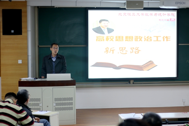 编辑:董学敏 审核:高伟涛 阅读次数:为深入贯彻落实习近平总书记在全国高校思想政治工作会上的讲话精神,进一步加强学院师德师风建设,不断提高教学环境和教学秩序,2017年1月4日,北理工数学与统计学院党委在理学楼B106召开习近平总书记在全国高校思想政治教育工作会讲话精神学习及师德、教学工作会议,数学与统计学院全体教职工参加会议。