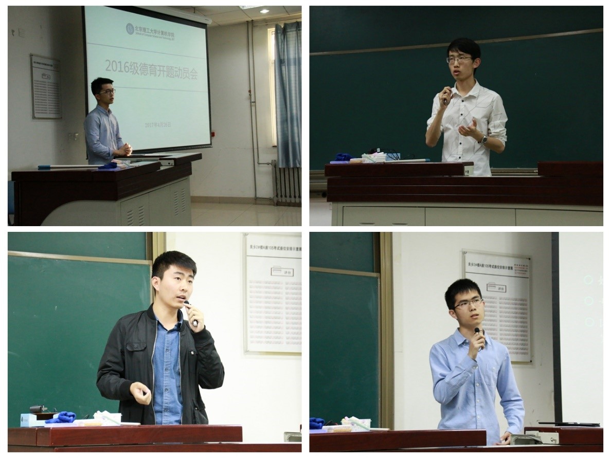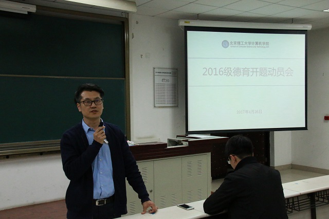 2017年4月26日18:00,北理工计算机学院2016级本科生德育开题动员会在良乡校区综合教学楼A105举行。计算机学院党委副书记、副院长奚英伦,分团委书记郝志敏出席本次动员会,会议由2016级本科生辅导员惠宁主持。