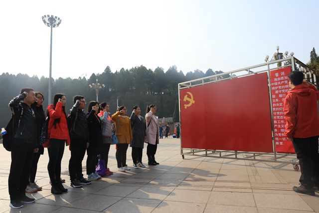 参观结束后,在2017级博士崔畅同学的带领下,全体党员重温入党誓词,缅怀先烈。在鲜艳的党旗下,党员们举起右手,庄严宣誓,再次体会作为一名共产党员的崇高信念和重要责任。