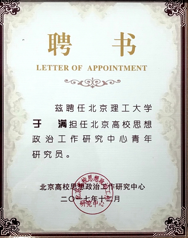 北理工辅导员被聘为北京高校思想政治中心青年研究员