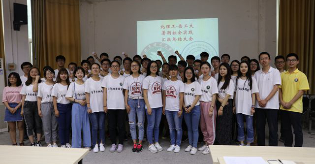 实践团到达延安后,成功与西北工业大学理学院的师生汇合,共同开展暑期红色社会实践活动。在西北工业大学建校80周年、理学院建院15周年之际,实践团的同学们为西北工业大学录制了祝贺视频,西工大的同学们给我校同学赠送了纪念品手环和纪念章。在最后的汇报表演中,两所学校的同学们合唱《中国军魂》,以此纪念两校之间的友谊和学生情谊。同学们表示要不断提高自身要求,通过实践增进校际友谊,携手践行国防院校的责任使命。