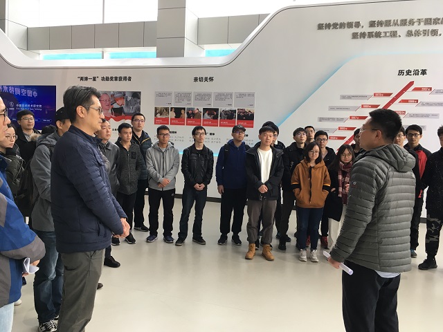 编辑:林婷 审核:奚英伦 阅读次数:为学习贯彻全国高校思想政治工作会议精神,帮助师生正确认识时代责任与历史使命,坚定落实以党建带团建,团结带领广大团员青年听党话,跟党走,进一步深化开展我院“担复兴大任,做时代新人”“弘扬爱国奋斗精神,建功立业新时代”主题教育活动。11月15日下午,计算机学院组织教工党支部、学生党、团支部赴中国空间技术研究院调研参观。中国空间技术研究院508所副所长李潞东,中国空间技术研究院人力资源部计划调配处副处长刘皓玉,总体部人力资源处副处长安亮,通信卫星事业部人力资源处副处长宋达陪同师生们进行参观并为大家进行讲解。计算机学院党委副书记、副院长奚英伦,教工第五党支部、2017级研究生第1党支部、团支部和2016级本科生物联网团支部参加了本次活动。