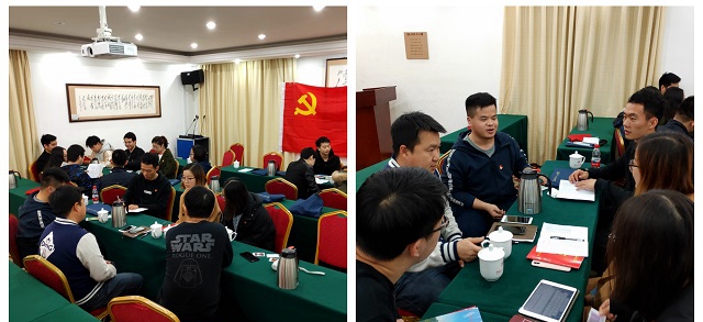 利用晚上时间,党员们结合培训过程中的所感所想,以“如何在新时代下弘扬爱国奋斗精神,向着党的奋斗目标建功立业”为主题展开了讨论交流。最后大家针对支部建设、党员教育管理等工作内容作了经验分享。