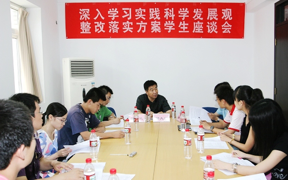 7月7日下午,学生工作部在10号楼二层会议室举办“深入学习实践科学发展观整改落实方案”座谈会。党委书记郭大成、宣传部部长贺亚兰、学生工作部副部长杨海以及11位学生代表参加了此次座谈会。