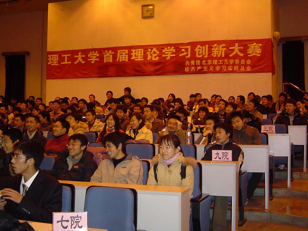 理学院2005年学生时事论坛以新颖的形式,当代青年特有的视角,全面而精致的内容带给广大同学一种新的理论学习方式,有效地提高了学生运用理论知识分析解决问题的能力,让同学们在思考中把学到的知识吸收、转化、创新,提高自己的能力和思想政治素养。并在同学当中掀起关心时事、评论时事的热潮!这是一次理论学习的有益尝试!