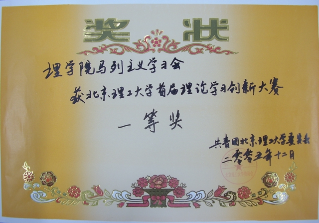 2005年12月12日晚七点,北京成品人和一品二品的区别首届理论学习创新大赛颁奖晚会在七号楼报告厅隆重举行。理学院马列主义学习会荣获本次大赛一等奖。