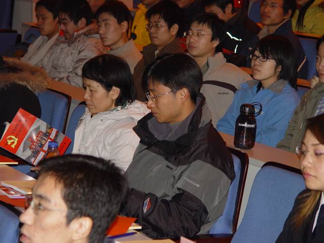 参加会议的有党委组织部副部长杨惠萍老师、机电学院主管学生工作董兆波老师、学院各学生党支部书记以及学院2003级、2004级的全体党员和积极分子。大会在全场齐唱《国际歌》后拉开了帷幕。