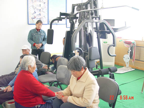 在参观时,仍然可以看见在活动室里健身、娱乐的老人,足疗、降压、健身、台球、扑克的活动室,看书、看报、上网的阅览室还有卫生室里诊疗的老人们,在聊天中我们听到的是他们对村政府、村党委工作的高度评价,以及对晚年生活的信心与激情。这是白各庄在提高村民服务,为村民办实事上做出的不斐成绩。同时我们还可以看见,04年以来,胡锦涛总书记,贾庆林主席,刘淇书记等党中央以及北京市党委,政府领导对白各庄莅临指导的图片。