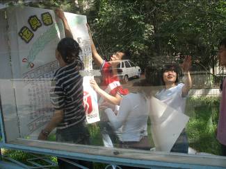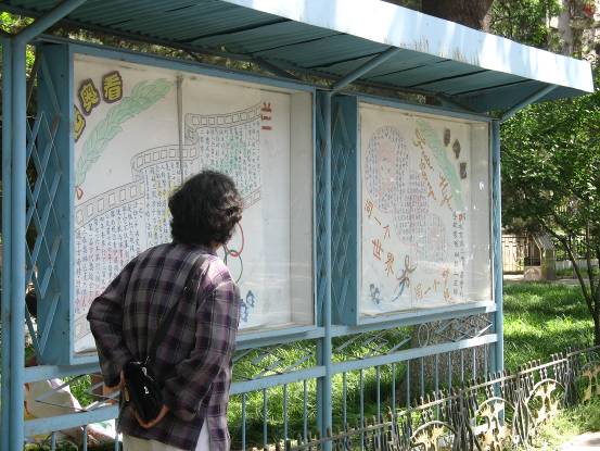 为了深入贯彻学院分党委“党员零距离”系列活动的精神,5月20号上午,我院04级二支部党员来到学校家属区,为理工家属区的板报换新颜。以奥运为主题的板报板面活泼,鲜艳的色彩洋溢着青春的气息,不禁引来过往行人的驻足。