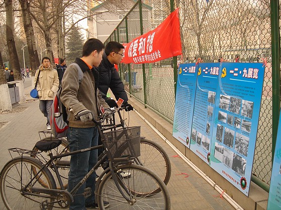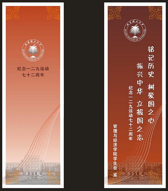 2007年12月9日,管理与经济学院的同学在新食堂的对面举办了有关纪念“一二.九”学生运动七十二周年的展览活动,本次活动以“铭记历史 树爱国之心 振兴中华 立报国之志”为主题,向同学们介绍了“一二.九”学生运动的原因,过程及影响,让同学们了解历史,铭记历史,增强同学们的爱国意识,进一步深化爱国情怀!
