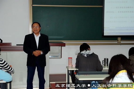 2008年5月9日下午4时,良乡理科教学楼109教室坐满了人文学院07级同学中的入党积极分子和预备党员。在一阵热烈的掌声中,人文学院党委书记张剑军教授来到讲台前,开始了本学期的最后一次院级党课。窗外下着霏霏细雨,窗内是志存高远的年轻人们和学识渊博的老师在探讨国运民生,颇有“风声雨声读书声,声声入耳;家事国事天下事,事事关心”的况味,让人难以忘怀。
