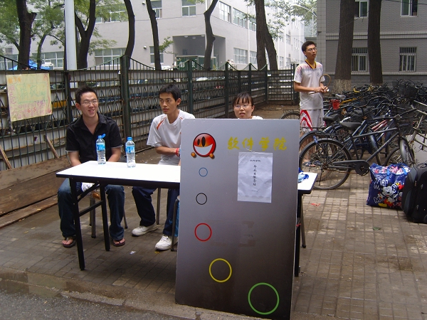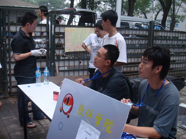 软件学院的服务站在3号楼的院子里引起了极大的反响,很多学长都前来询问,小小的服务站一时间变成了大家交流沟通的平台,气氛很是和谐融洽。