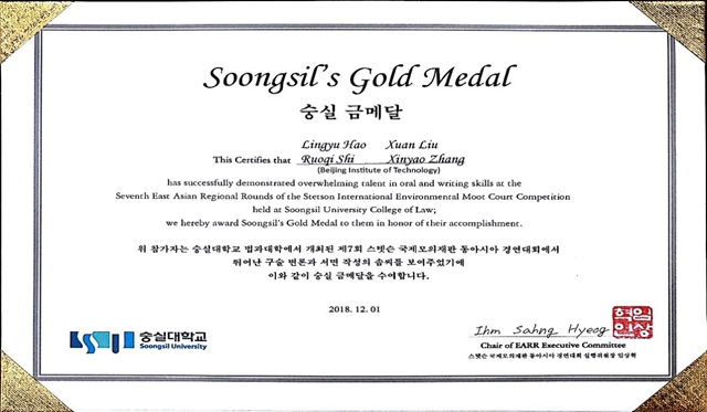 北理工在第23届“史丹森”国际环境法模拟法庭大赛东亚赛区选拔赛中获冠军