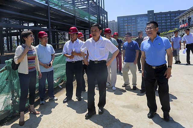 校长胡海岩到良乡校区检查重点工程建设进度, 二是项目管理部门与施工单位要确保工程质量, 检查了一层办公用房的使用和二层专业学院办公室建...