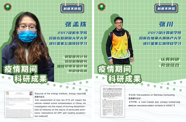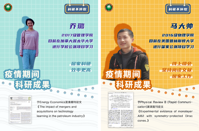 保障科研学习成效。同学们在做好自我防护的同时,不忘海外留学的初心,积极开展科研工作,及时调整学习计划,合理利用学校提供的在线数据库资源,采用网上学习、线上视频、远程会议等形式与国内外导师进行学术探讨。通过刻苦钻研,部分同学在疫情期间还取得了较为突出的研究成果。据统计,我校海外研究生疫情期间已累计在顶级或重要期刊上投稿70余篇,正式发表学术论文20余篇。