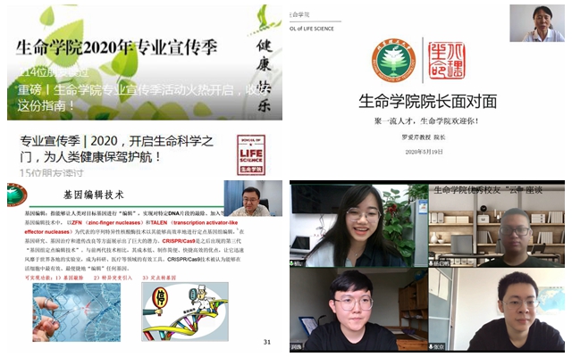 此次实验室云参观是疫情特殊时期,生命学院结合实际情况,创新开展的一次线上实验室参观活动。此次实验室云参观的“硬核”体验,不仅让学生了解了生命学院的专业特色、科研平台和科研能力,也帮助学生充分了解生命学院各专业情况,帮助低年级本科生选择适合的专业。5月中旬至6月中旬开展了为期一个月的专业宣传季活动,生命学院院长罗爱芹教授主讲了生命科学前沿“云报告”、霍毅欣、李勤等教授主讲了以“合成生物学”“生物医学工程”“核酸疗法”“肿瘤防治”为主题的专业前瞻系列“直播课”、保研至清华、北大等优秀校友进行了专业“云座谈”、还有重点实验室和高端企业的“云参观”、以及专业介绍及研究方向“云”推送,并且建立了qq咨询群及时解答学生问题,切实做好专业确认的咨询与指导工作。同时,此次活动也吸引了高三考生和家长的关注,取得了良好的招生宣传效果。