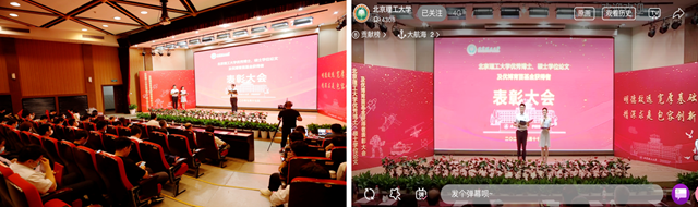 表彰会现场有在校的24名优秀博士、硕士学位论文获得者、12名优博育苗基金获得者,机械与运载学部副主任左正兴、信息与电子学部副主任贾云得、理学与材料学部副主任张向东、人文与社会科学学部主任李金林,以及学院代表、导师代表、学生代表、研究生院领导等80余人参加。上万名师生、考生家长通过我校官方B站观看了直播活动。