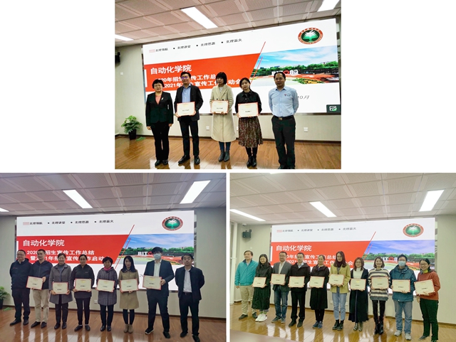 为表彰先进、树立典型,激发全体领航人的工作热情,自动化学院决定对在2020年度招生宣传工作中表现突出的领航人给予表彰,王美玲宣读表彰决定,夏元清、王美玲、邓志红、孙健、杨毅、邓方等学院领导为受表彰领航人和团队颁发获奖证书。