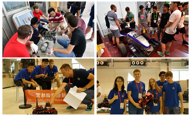 “科技创新训练”课程环节由机械与车辆学院地面机动装备国家级实验示范教学中心承办。中心教师刘波澜、谭建伟等为学生安排了为期三天的发动机拆装、变速器拆装实践实习。李忠新、何永熹、吕唯唯等实践教学一线教师为此次活动精心设计了三天的智能车自主导航竞技实践活动,活动内容包含智能车系统搭建、控制程序调试、传感器应用、SLAM地图构建、自主导航竞技等环节;中外学生根据给定条件与要求,通过分组讨论自主完成智能车的运动设计与实现,并以竞赛的形式开展路径规划、循迹、避障等功能展示。中外学生在实践环节互动交流气氛热烈,不同国家大学生的科技创新思维在此进一步碰撞和交融。