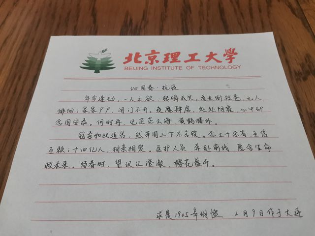 抗击疫情,北理工求是书生从我做起,行动起来,吹响了“青春集结号”,做好科学防护,加强思想建设,以青春的时代担当,为打赢疫情防控阻击战做出自己的一份贡献。