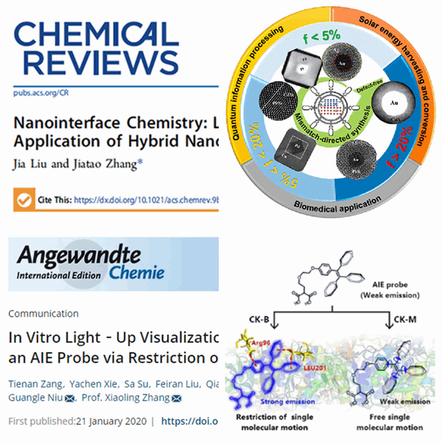 抗击疫情期间,我院教师积极有序地开展科研工作,近日取得了可喜的成绩。张加涛团队在国际顶级期刊《Chemical Reviews》(影响因子54.3)上在线发表题为《Nanointerface Chemistry: Lattice-Mismatched-Directed Synthesis and Application of Hybrid Nanocrystals》的综述论文。张小玲教授、张汝波副教授与合作者在国际顶级期刊《Angew. Chem. Int. Ed.》(影响因子12.1)上在线发表题为《In Vitro Light‐Up Visualization of a Subunit‐Specific Enzyme by an AIE Probe via Restriction of Single Molecular Motion》的论文。