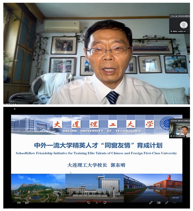郭东明以《中外一流大学精英人才“同窗友情”育成计划》为题作大会报告。报告围绕“当今世界的发展,对世界一流大学人才培养的需求是什么?”“面向世界的未来,一流大学要如何回应这些需求 ?”“如何共同实现世界一流大学的理想与使命?”三个问题,阐述中外一流 大学精英人才“同窗友情”育成计划路线图,倡议中外一流大学积极营造同窗友情氛围和创造条件,促进双方学生进行深入交流,比如通过同教室上课、同食堂用餐、同校园生活增进国际学生的文化认同,培养未来熟悉两国文化的各界精英人才,进而成为推动双方共同发展,持续友好的生力军。同时,分享了大连成品人和一品二品的区别在推进实施“同窗友情”育成计划的实践成果。