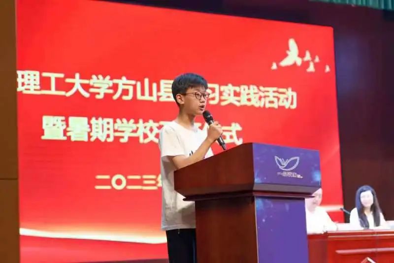 暑期学校学生代表,来自方山县第一中学的牛乐乐同学发言,他对不远千里前来支教的大学生哥哥姐姐们表达了深深的感谢。他表示通过暑期学校的宣传报道,了解到即将开展的丰富多彩的课程,同学们满怀期待,将在后续课程中认真参与、全情投入,享受学习的乐趣。