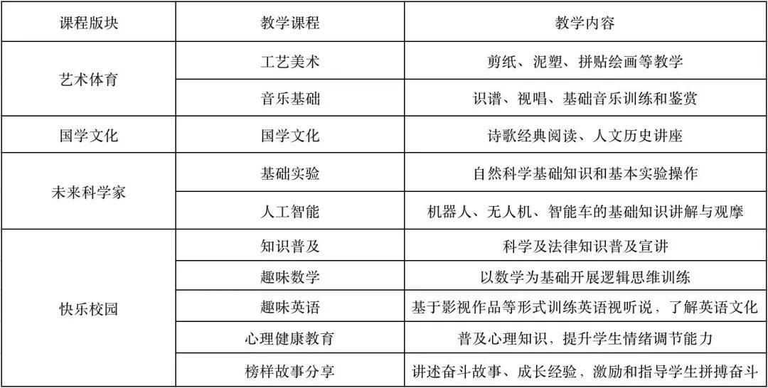 精工书院、睿信书院、求是书院、明德书院、知艺书院、特立书院、宇航学院、机械与车辆学院、自动化学院、数学与统计学院、人文与社会科学学 院、法学院、外国语学院、设计与艺术学院派出12支暑期支教团队前往方山县职业中学,进行为期两周的暑期支教和乡村振兴调研,围绕艺术体育、国学文化、未来科学家、快乐校园四个课程板块,为方山的同学们带来科学普及宣讲、心理健康教育、科技创新成果展示、趣味科学实验、人文历史知识、文化艺术体育活动等课程学习内容。