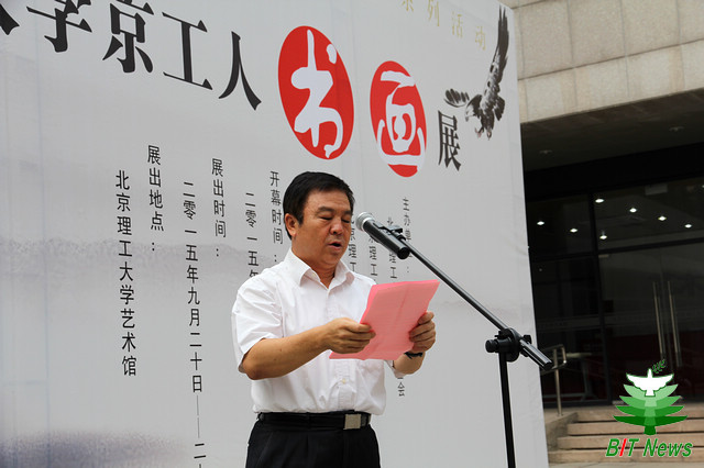 学校办公室、党委宣传部、校友会办公室、校团委、档案馆、图书馆、离退休工作处、人文学院、设计学院、国际教育学院和教育基金会办公室负责人,离退休教师代表,学生代表参加书画展开幕仪式。