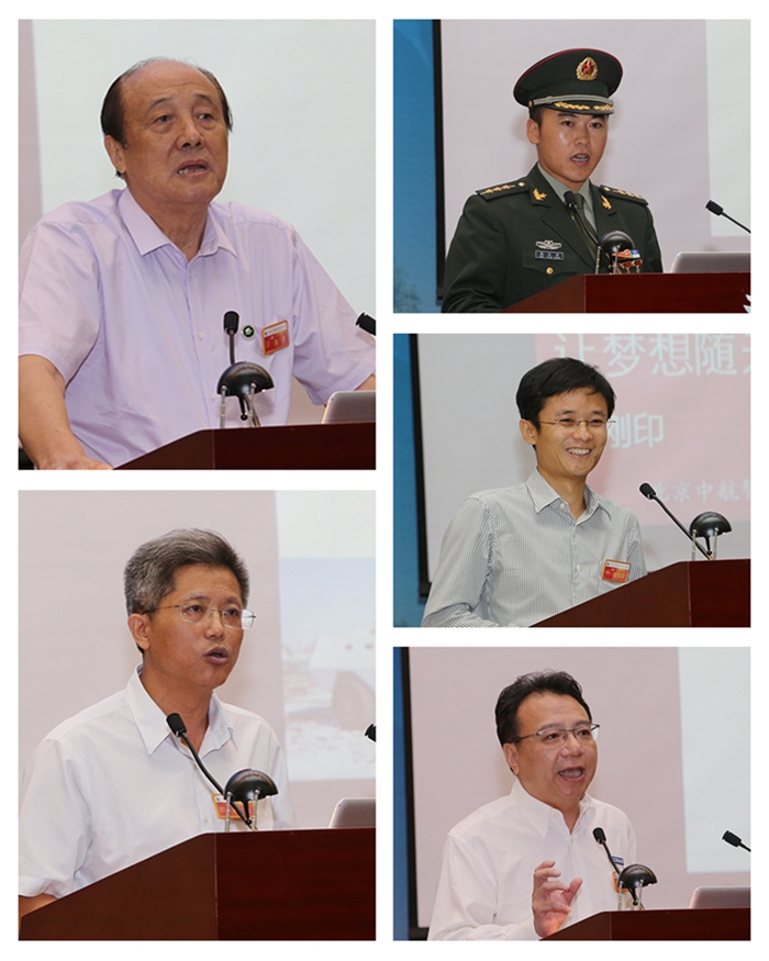 第五届校友论坛由学校校友、共青团北京市委副书记杨海滨主持。吉林省人民政府原省长、现任中国职业经理人协会会长洪虎,全国劳动模范、中国兵器首席专家毛明,驻藏某旅作训科参谋高永东,北京中航智科技有限公司创始人田刚印,中软国际有限公司董事局主席及首席执行官陈宇红分别代表政府部门、科研领域、军队系统、民营企业的校友发言。洪虎谈到母校对个人学业德行的教诲,基层对个人意志能力的磨炼,是自己获得成功的无形财富,他祝愿母校在全校师生的共同努力下,创造更加辉煌的明天。毛明通过自身参研经历介绍了我国坦克装甲车辆技术的发展历程,并为现场学生提供了成长感悟和择业启示。高永东汇报了通过忠诚与执着,在岗位上建功立业,实现梦想的三点体会,一是要胸怀梦想,肩负责任;二是要脚踏实地,砥砺前行;三是要坚定信念,迎接挑战。田刚印感谢了学校为他实践梦想提供的平台和支持,介绍了自己在无人直升机领域将创新转化为创业的经历和成果,鼓励在校学生积极参与创新实践,在不懈努力中实现梦想。陈宇红回忆了在校期间的难忘经历,分享了创业圆梦中的个人体会,鼓励母校学子团结协作,共同担负起实现国家振兴的重担。