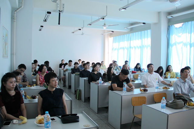 午餐后,在中教526教室举办了“外国语学院校友恳谈会”。院长李京廉、书记陈大明、副院长姜爱红、副书记副院长吴文君以及各系部主任、教师以及全体返校校友参加。大家济济一堂,室内洋溢着喜庆和温暖。座谈会由吴文君老师主持。