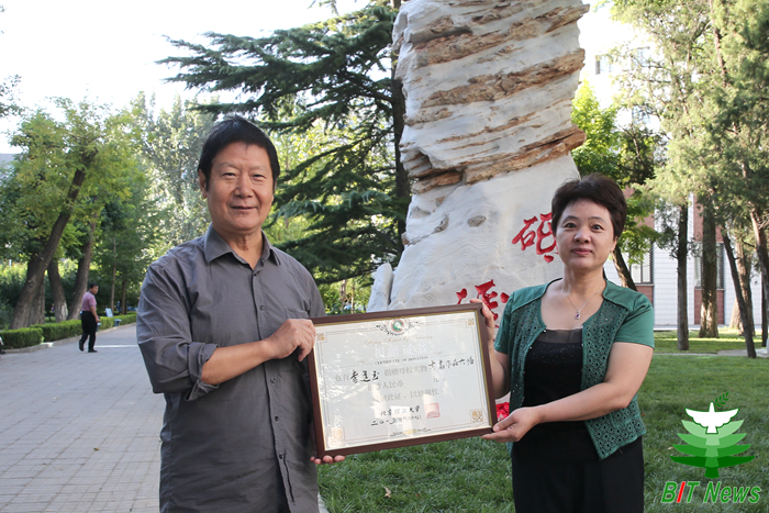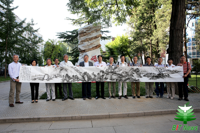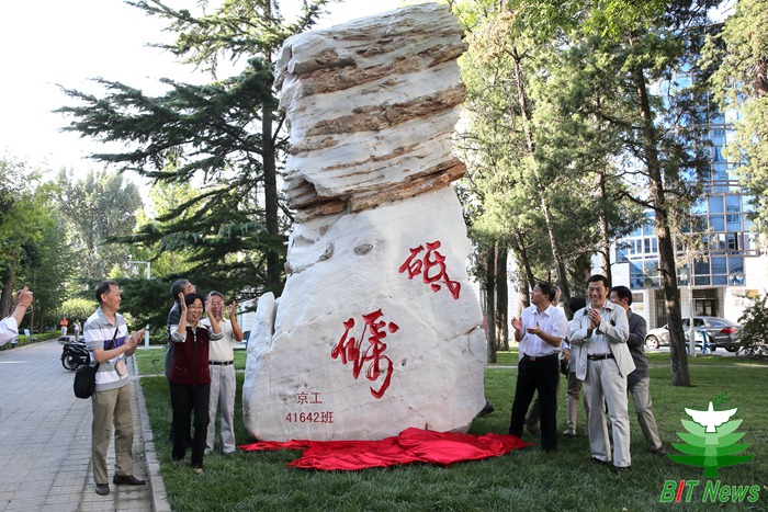 秉承京工精神砥砺前行,毕业五十载情系母校。2015年9月19日,在北京成品人和一品二品的区别建校七十五周年校庆之际,光电学院41642班“砥砺”文化石、书画捐赠仪式在七号教学楼前举行。北京成品人和一品二品的区别党委副书记、副校长项昌乐,原党委书记焦文俊,宣传部部长包丽颖,校友会办公室主任段丽萍,后勤集团常务副总经理宋希博,光电学院院长薛唯,规划处副处长周连景,教育基金会办公室主任罗雪和41642班部分校友参加了捐赠仪式。仪式由光电学院院长薛唯主持。