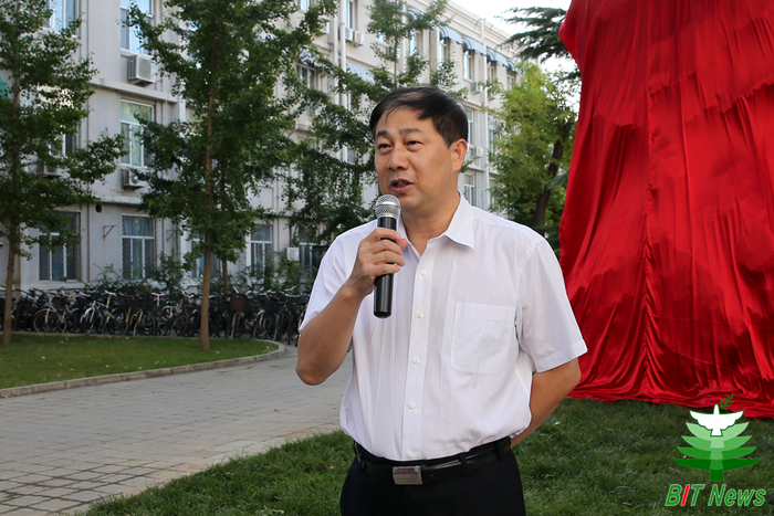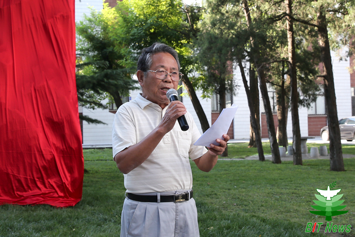 41642班同学代表刘长跃校友介绍了“砥砺”文化石的由来和寓意,表达了对母校的感恩、祝福之情和对年轻学子们的殷殷期待。他谈到,“砥砺”文化石代表着京工41642班全体同学对母校的深厚感情,寓意着希寄母校发扬延安精神,砥砺奋进,续写辉煌。