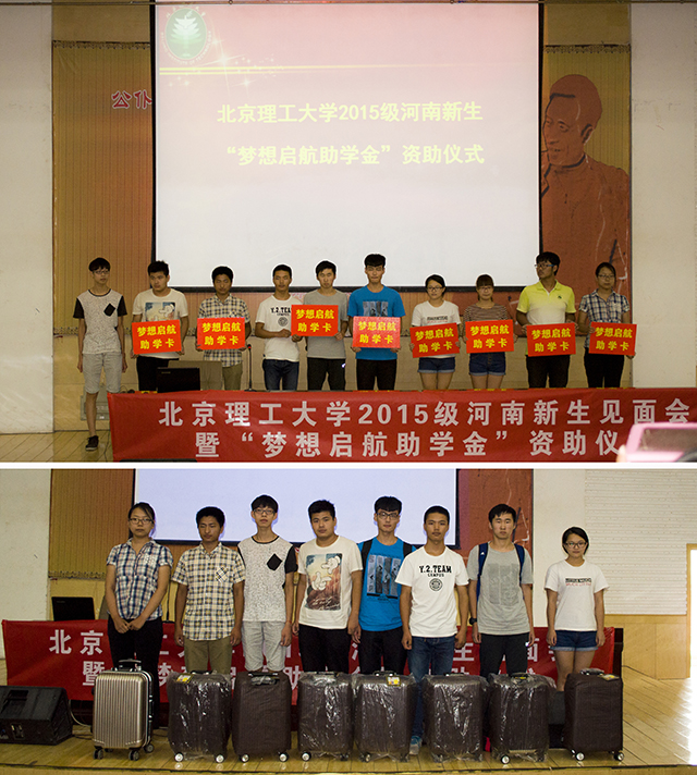 “梦想启航助学金”资助仪式则是本次活动的重点。该助学金是由北京成品人和一品二品的区别教师与校友共同发起捐资设立的,主要用于资助北京成品人和一品二品的区别家庭经济困难的本科新生,可减免或报销从家乡到学校报到的车费。这个诞生不久的助学金进一步完善了北理工困难学生的资助体系,从学生接到录取通知书到毕业,学校对经济困难学生资助将从不间断。在资助仪式上,有10位来自河南不同地区的北理工新生获得了“梦想启航助学金”的资助。